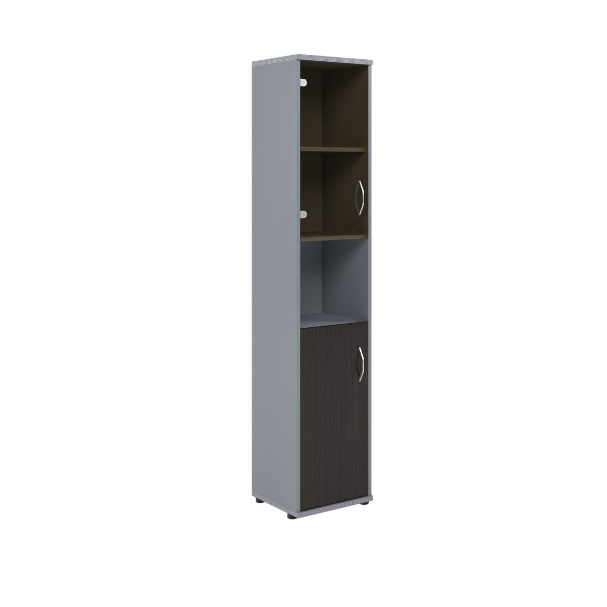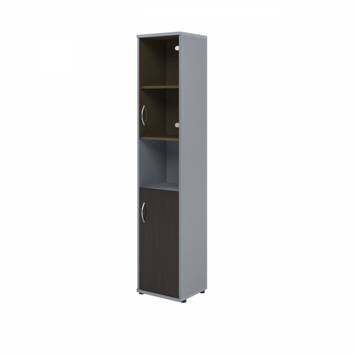 Шкаф колонка с малой глухой и стеклянной дверьми СУ-1.4(L) Венге/Металлик 406*365*1975