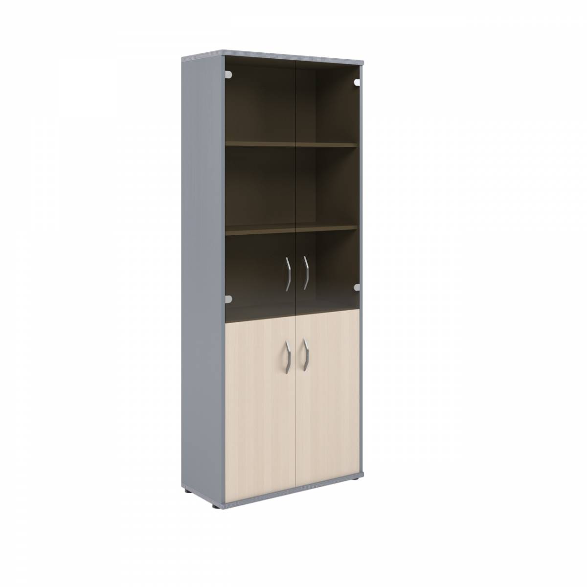 Шкаф колонка с малой глухой и стеклянной дверьми СУ-1.4(L) Клен/Металлик 406*365*1975