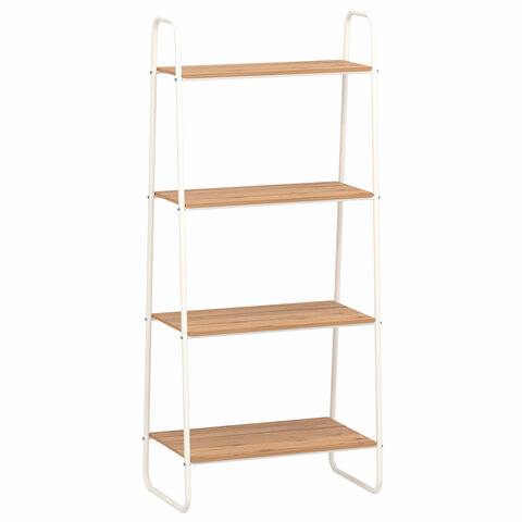 Стеллаж на металлокаркасе "Скандинавия-14", 450*385*1470 мм, 4 полки ЛДСП, белый/дуб, CТCП14 Б